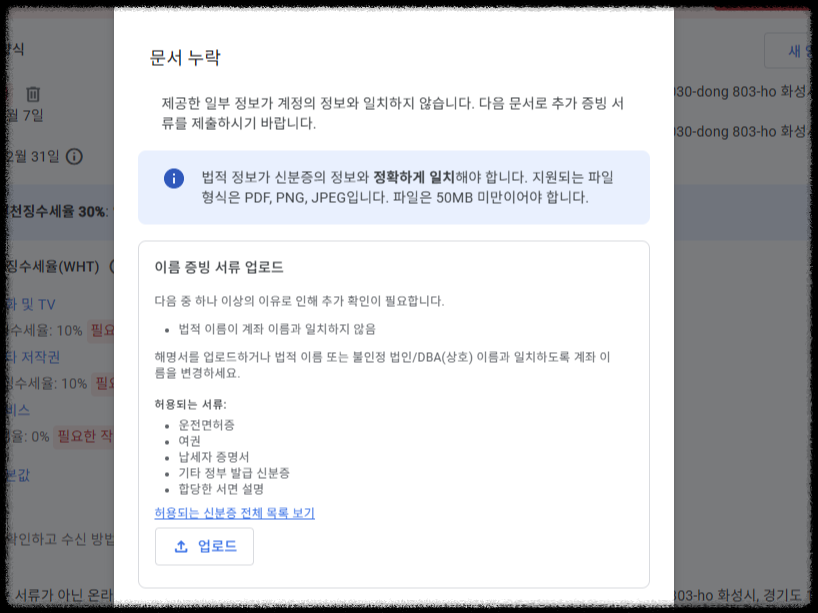 세금 정보 미입력이 가장 큰 원인일 수 있습니다.